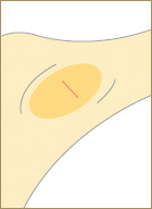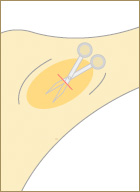 局所麻酔をして、目立たない皮膚のしわに沿って切開します。